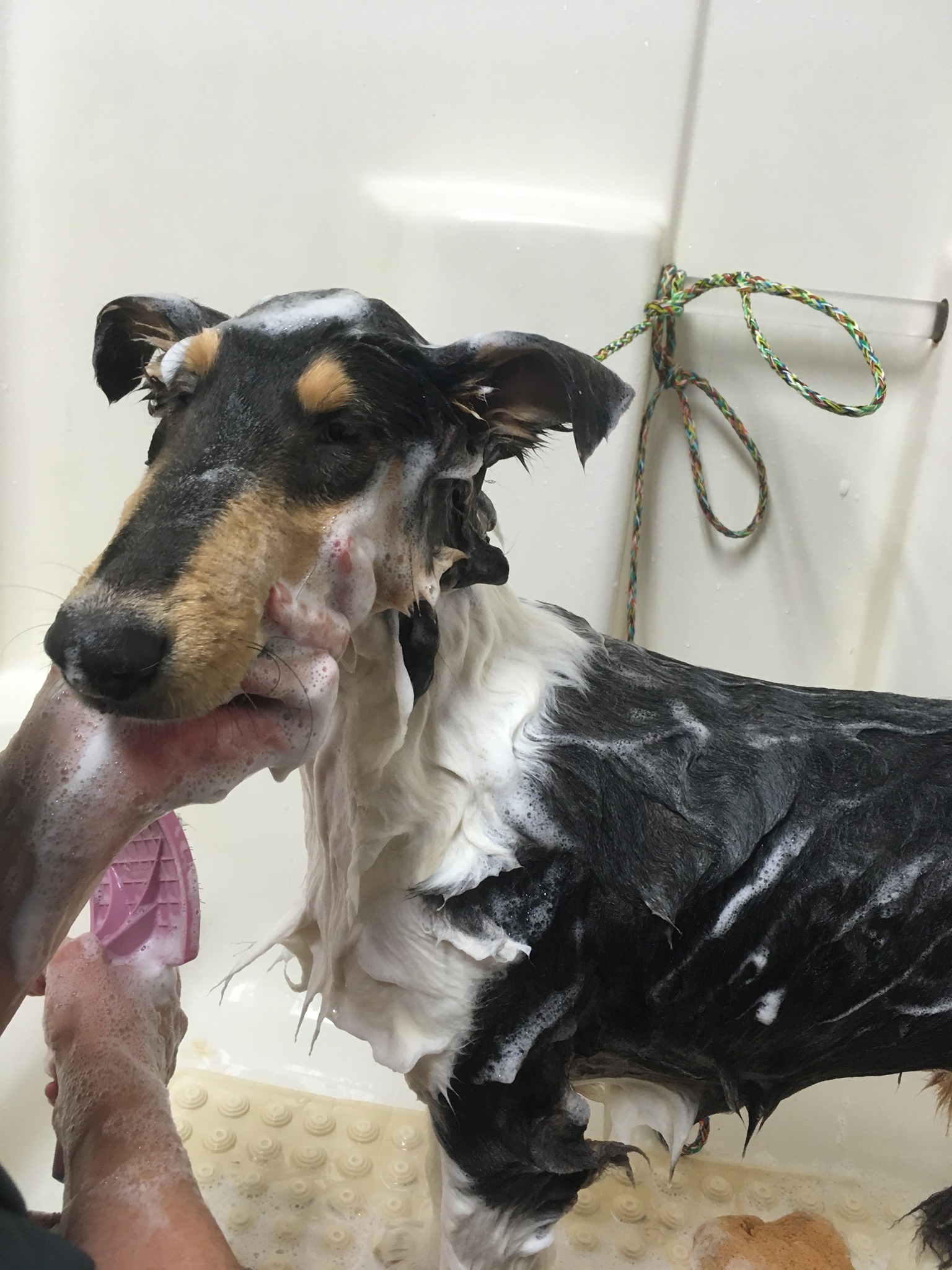 Our experienced bathers are thorough and professional. They give excellent baths, do nails, clean and pluck ears, express anal glands, and brush teeth. We call this the complete "B-NEAT" package. We use only the best shampoos and conditioners available for your pet's specific needs.